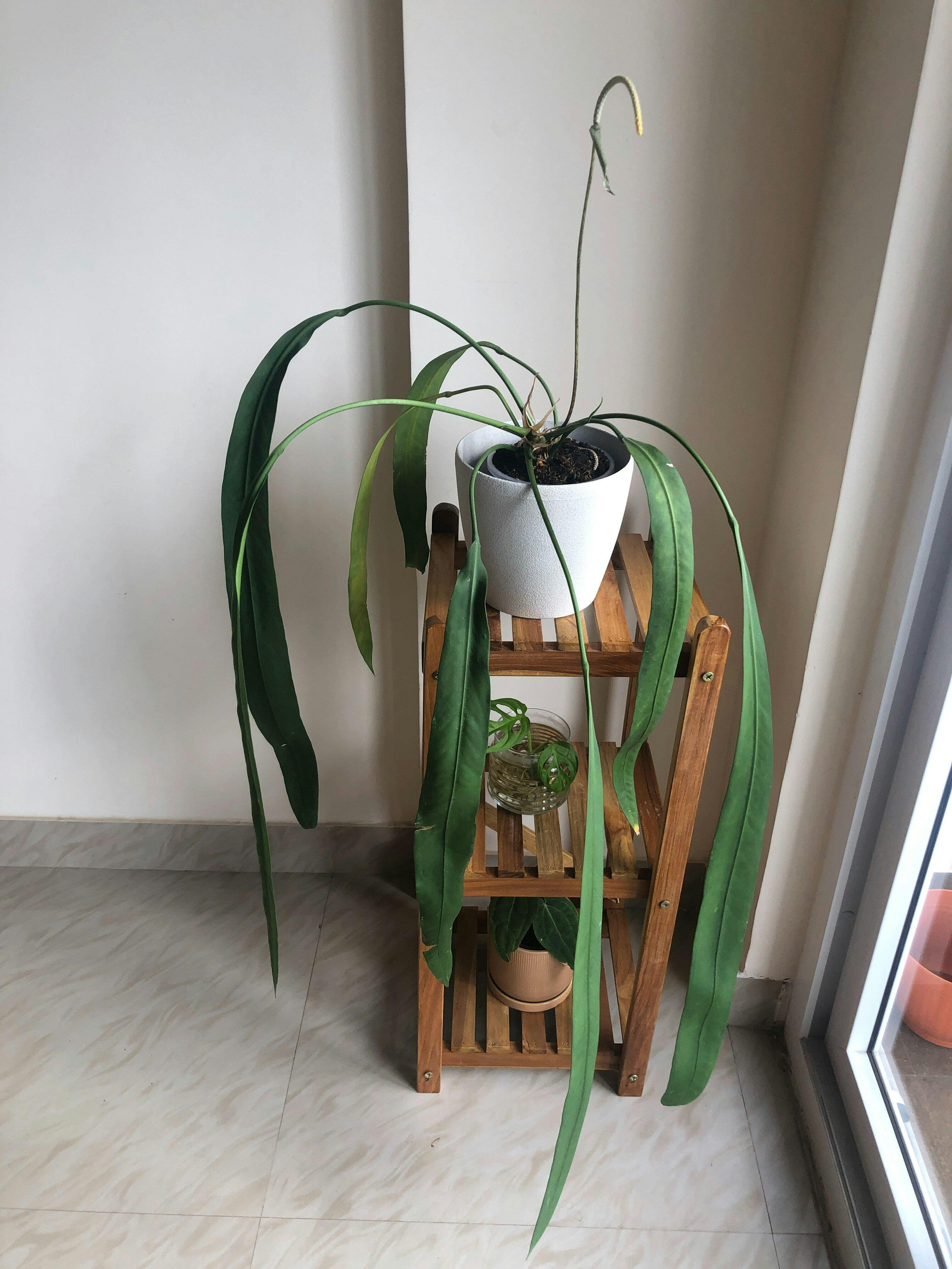 Meera Mysore The plant Anthurium Vittarifolium had 5 leaves when I received it, bit expensive for me but beautiful healthy plant. In the last 6 months, it has put out many inflorescence and 4 new leaves, newer leaves are generally more lengthier (>28inches) than the older ones. Packing was done very well and the plant came in good condition. Repotted the plant after 3 months.