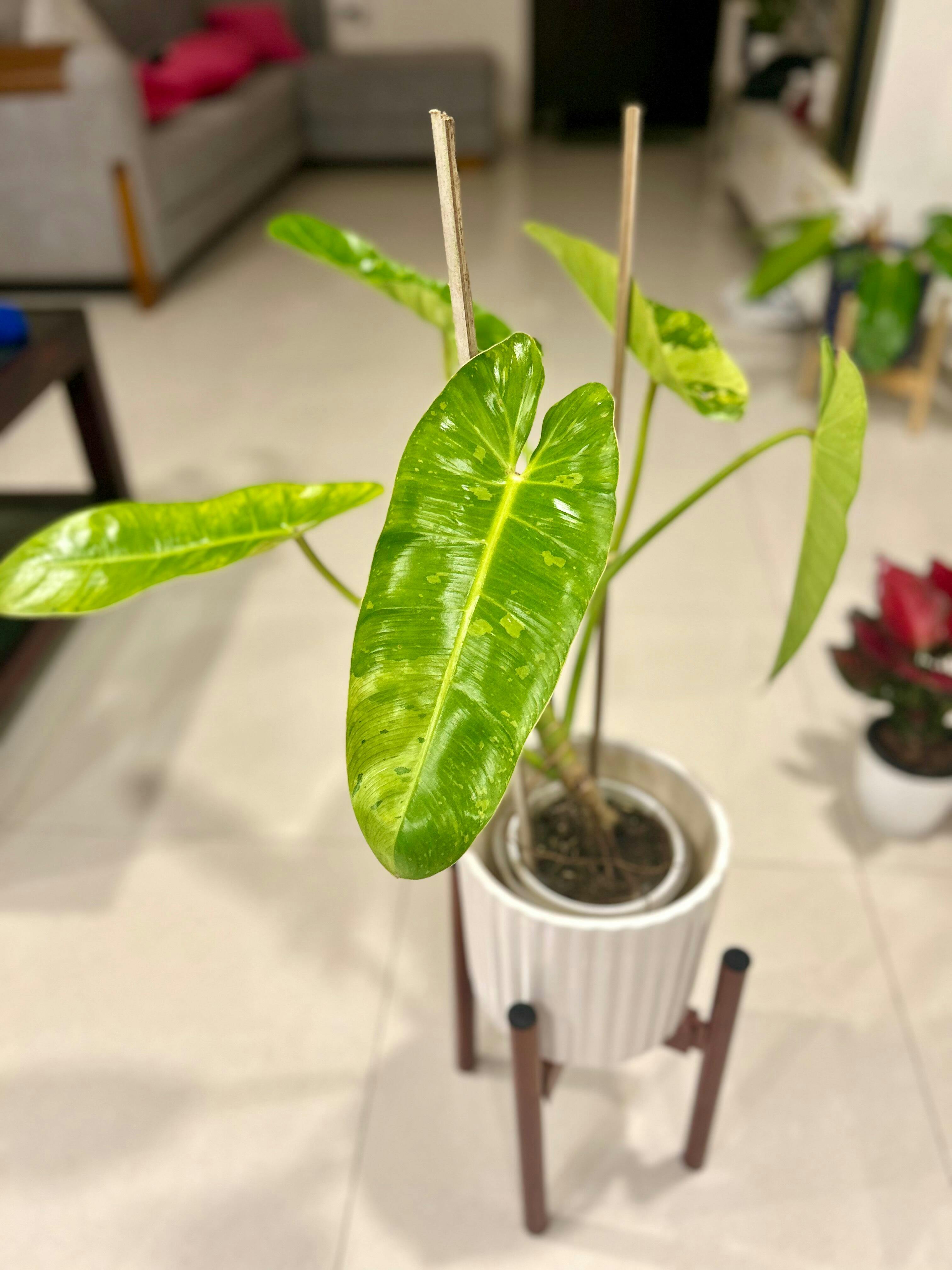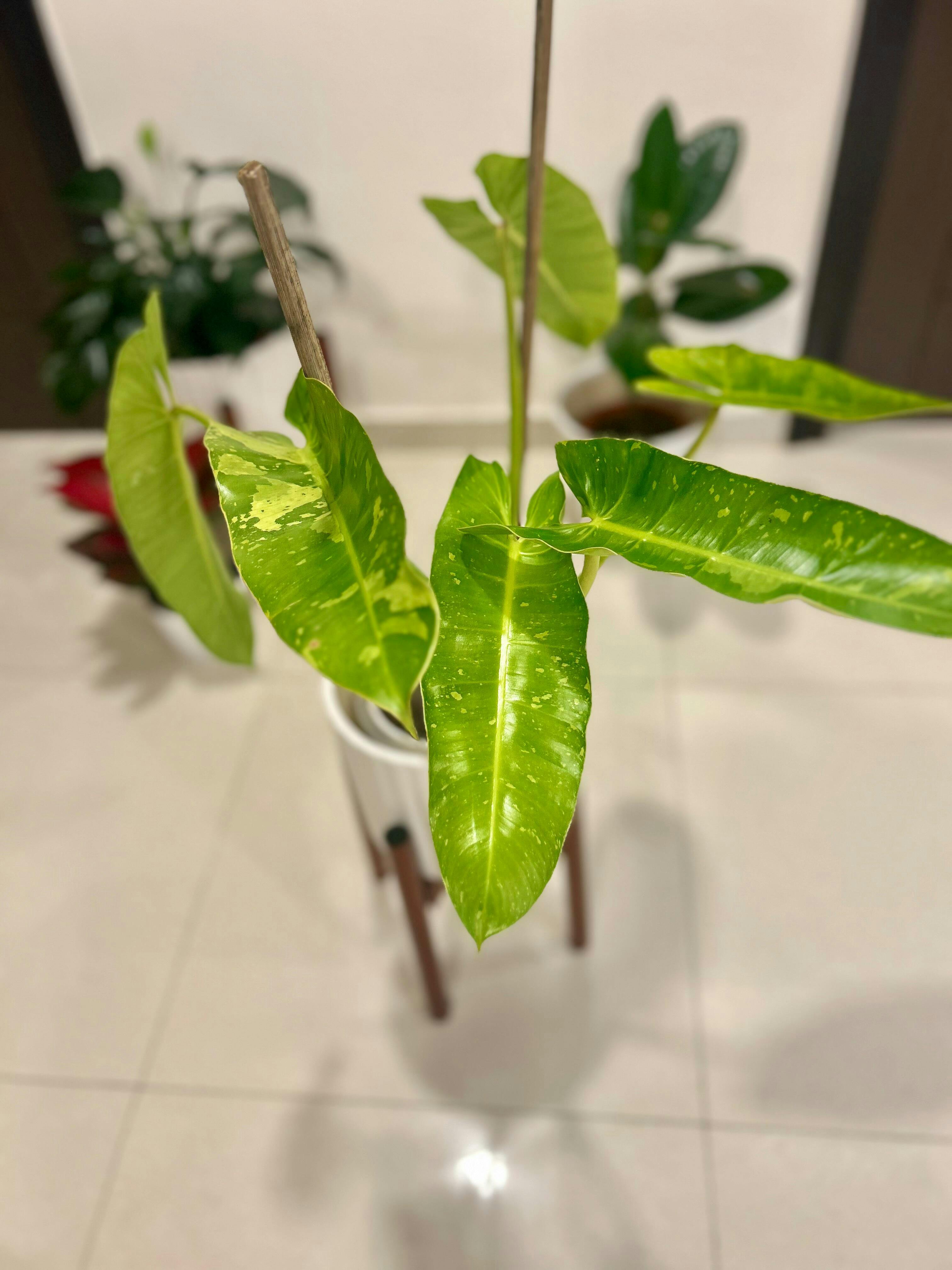 Philodendron Jose Buono is an stunning rare philodendron which is known for its beautiful variegated foliage. This plant doesn’t need much care, easy to handle. It is a climber and like other climbers it will produce larger leaves once it starts climbing on a moss pole or any surface.