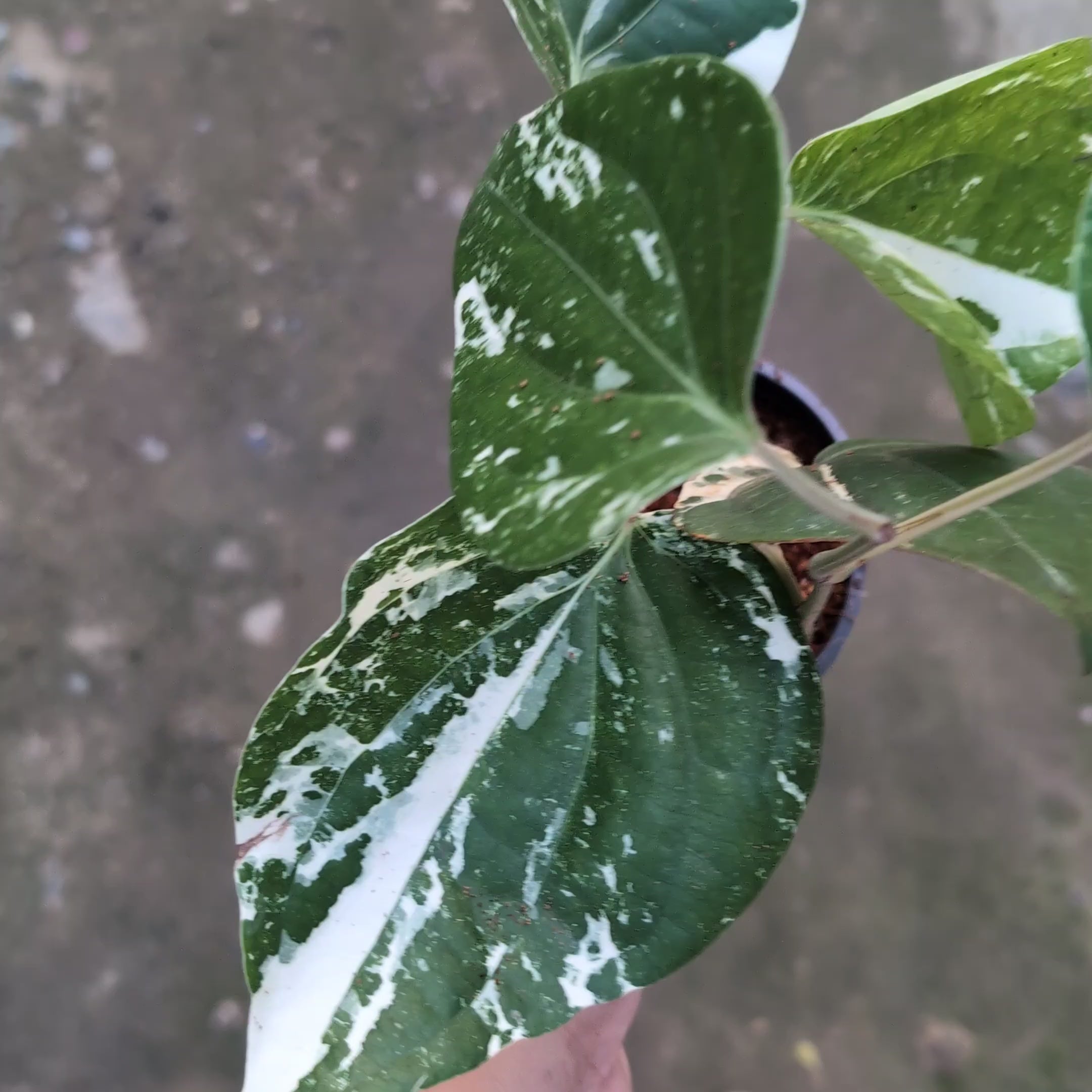 • Striking Variegation: The heart-shaped leaves of Piper Nigrum Albo Variegated are beautifully marbled with shades of white, cream, and green. The contrasting colors create an eye-catching display that makes this plant a true standout in any collection.